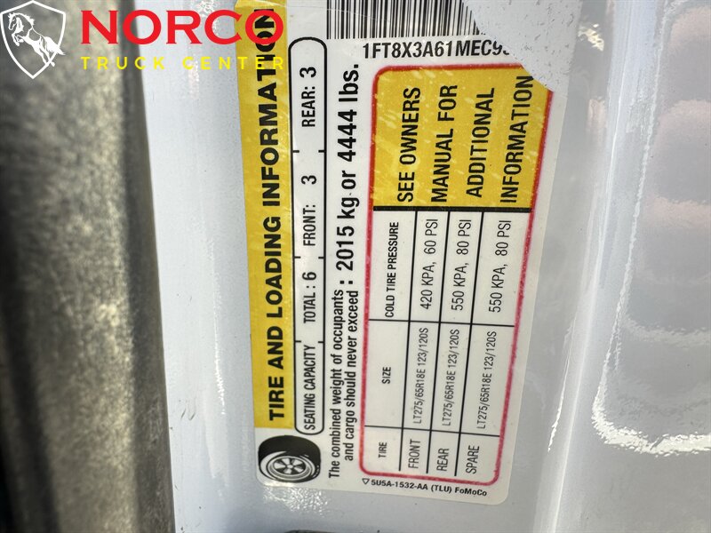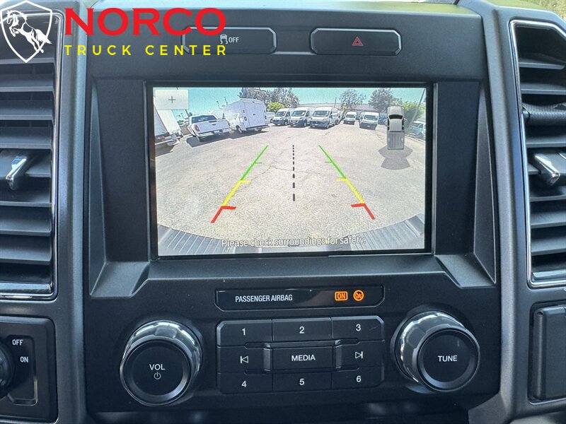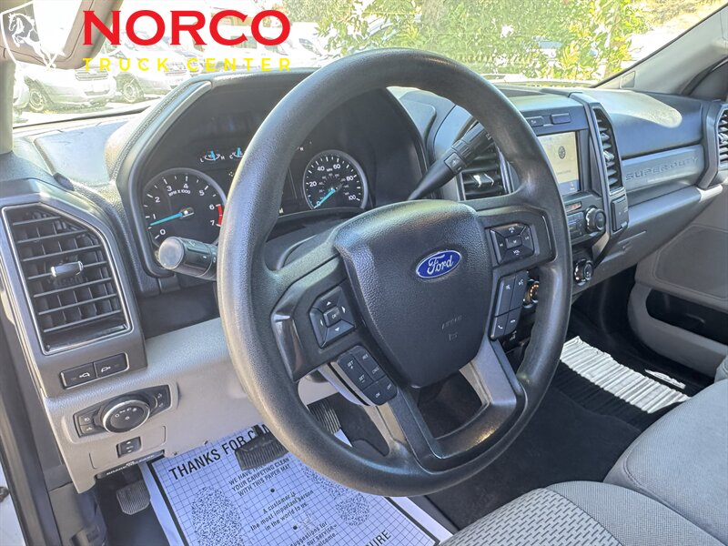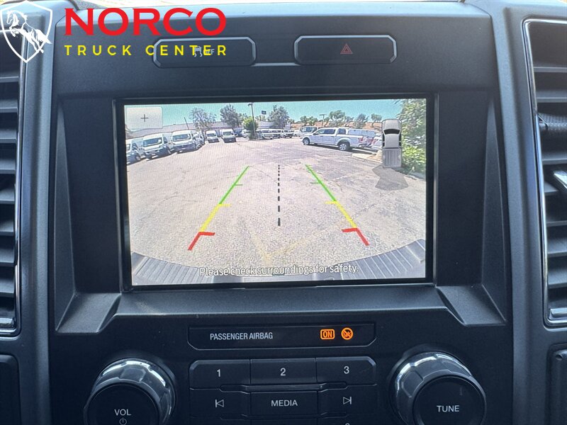 INSTALLED FEATURES: Air filtration, Front air conditioning, Front air conditioning zones: single, Airbag deactivation: passenger switch, Front airbags: dual, Side airbags: front, Side curtain airbags: front / rear, Antenna type: mast, Auxiliary audio input: Bluetooth / USB, Radio: AM/FM / voice operated, Speed sensitive volume control, Total speakers: 4, ABS: 4-wheel, Braking assist, Electronic brakeforce distribution, Front brake type: ventilated disc, Power brakes, Rear brake type: ventilated disc, Armrests: front center, Door sill trim: scuff plate, Floor material: rubber/vinyl, Steering wheel trim: urethane, Assist handle: front, Cupholders: front, Overhead console: front, Power outlet(s): 12V front / USB front / USB-C front, Power steering, Reading lights: front / rear, Rearview mirror: manual day/night, Steering wheel: tilt and telescopic, Steering wheel mounted controls: audio / multi-function / phone / voice control, Storage: accessory hook / door pockets, Vanity mirrors: passenger, Door handle color: black, Front bumper color: black, Grille color: black, Mirror color: black, Pickup bed light, Rear bumper color: black, Side door type: dual rear-hinged access, Tailgate: lift assist / removable, Window trim: black, Connected in-car apps: app marketplace integration, Infotainment: SYNC, Infotainment screen size: 4.2 in., Clock, Digital odometer, External temperature display, Gauge: oil pressure / tachometer / transmission temperature, Instrument cluster screen size: 2.3 in., Powertrain hour meter, Warnings and reminders: low fuel level / maintenance due, Headlights: auto delay off / auto on/off / halogen / quad headlights / wiper activated, Side mirror adjustments: manual / manual folding / manual telescoping, Towing mirrors, Alternator: 157 amps, Battery: maintenance-free, Battery rating: 650 CCA, Battery saver, Automatic hazard warning lights, Camera system: rearview, Child seat anchors: LATCH system, Crumple zones: front, Impact sensor: alert system / door unlock / post-collision safety system, Programmable safety key, Rearview monitor: in dash, Emergency locking retractors: front / rear, Front seatbelts: 3-point, Rear seatbelts: 3-point, Seatbelt pretensioners: front, Seatbelt warning sensor: front, Driver seat manual adjustments: 6 / lumbar / reclining, Front headrests: 2 / adjustable, Front seat type: 40-20-40 split bench, Passenger seat manual adjustments: 4 / reclining, Rear headrests: 3 / adjustable, Rear seat folding: folds up / split, Rear seat type: 60-40 split bench, Upholstery: vinyl, Anti-theft system: vehicle immobilizer, Hill holder control, Roll stability control, Stability control, Traction control, Trailer stability control, Front shock type: gas, Front spring type: coil, Front stabilizer bar, Front suspension classification: independent, Front suspension type: twin I-beam, Rear shock type: gas, Rear spring type: leaf, Rear suspension classification: solid live axle, Rear suspension type: multi-leaf, Electronic messaging assistance: voice operated / with read function, Hands-free phone call integration: voice operated, Smart device app compatibility: FordPass Connect, Smart device app function: engine start / lock operation / maintenance status / vehicle location, Wi-Fi: hotspot, Wireless data link: Bluetooth, Tow hooks: front, Trailer hitch, Trailer wiring: 4-pin / 7-pin, Spare tire mount location: underbody, Spare tire size: full-size, Spare wheel type: steel, Tire Pressure Monitoring System, Wheels: painted steel, Front wipers: variable intermittent, Solar-tinted glass: front