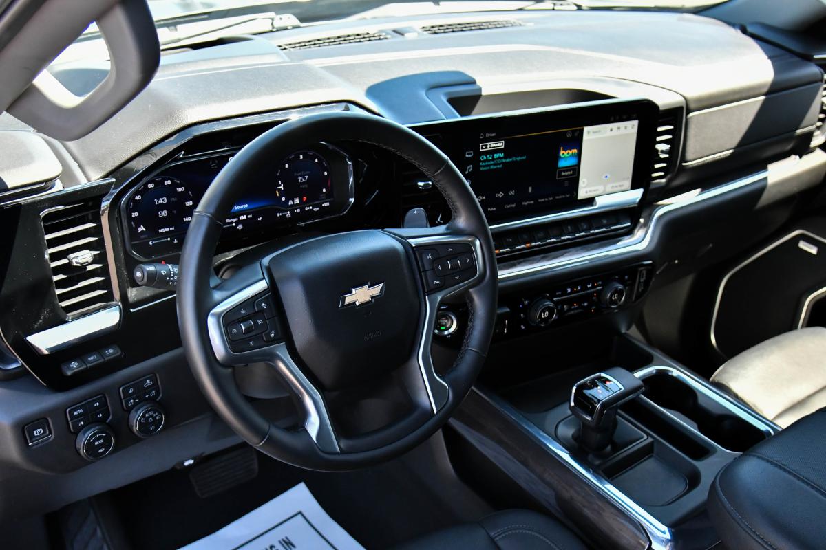 This Chevrolet Silverado 1500 has a dependable Turbocharged Diesel I6 3.0L/182 engine powering this Automatic transmission. Only 14,492 Miles! Z71 OFF-ROAD PACKAGE includes (Z71) Off-Road suspension, (JHD) Hill Descent Control, (NZZ) skid plates and (K47) heavy-duty air filter Includes Z71 hard badge, (N10) dual exhaust, (QAE) 275/60R20 all-terrain, blackwall tires and (NQH) 2-speed transfer case., WINDOW, POWER, REAR SLIDING with rear defogger, WHEELS, 20 X 9 (50.8 CM X 22.9 CM) STERLING SILVER PAINTED ALUMINUM (STD).*This Chevrolet Silverado 1500 Comes Equipped with These Options *TECHNOLOGY PACKAGE includes (DRZ) Rear Camera Mirror and (UV6) 15 Diagonal Head-Up Display (Includes (UVN) Bed View Camera., LTZ CONVENIENCE PACKAGE II includes (A48) rear sliding power window, (UG1) Universal Home Remote, (KA6) Rear Heated Outboard Seats, and (KSG) Adaptive Cruise Control-Camera , TRANSMISSION, 10-SPEED AUTOMATIC with Electronic Transmission Range Selector (ETRS), electronically controlled with overdrive, tow/haul mode and steering column paddle shifters. Includes Cruise Grade Braking and Powertrain Grade Braking, TRANSFER CASE, TWO-SPEED electronic Autotrac with push button control, TIRES, 275/60R20SL ALL-TERRAIN, BLACKWALL (Includes (QAQ) spare tire.), TIRE, SPARE 255/80R17SL ALL-SEASON, BLACKWALL, SUNROOF, POWER on Crew Cab models, STERLING GRAY METALLIC, STEERING COLUMN LOCK, ELECTRICAL, SKID PLATES.