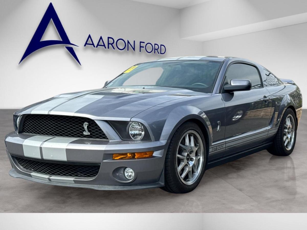 This low-mileage 2007 Ford Mustang Shelby GT500 is a rare opportunity to own a true modern muscle icon in exceptional condition. With just 19,620 miles, this GT500 has been meticulously maintained and remains in pristine shape, showcasing the legendary performance and heritage that define Shelby vehicles. Under the hood lies a supercharged 5.4L DOHC V8 engine paired with a performance-tuned suspension, delivering exhilarating power through a rear-wheel-drive drivetrain that stays true to its racing roots.This example stands out with its unmistakable Shelby styling, including signature racing stripes, functional hood vents, and bold exterior accents that command attention wherever it goes. Inside, the driver-focused cockpit features premium touches such as leather-wrapped sport seating, aluminum trim, and a unique gauge cluster with integrated boost gauge, blending classic muscle car feel with modern comfort. Performance is further enhanced by Brembo front brakes, a limited-slip differential, and SVT-tuned suspension components, making this GT500 as capable on the road as it is thrilling.Available now at Aaron Ford of Poway, this exceptionally clean and low-mile Shelby GT500 is a standout collector-quality vehicle that offers both investment potential and pure driving excitement.