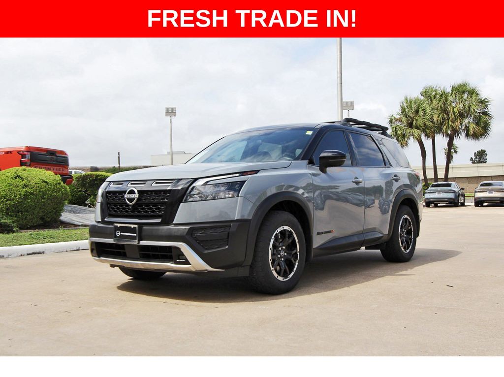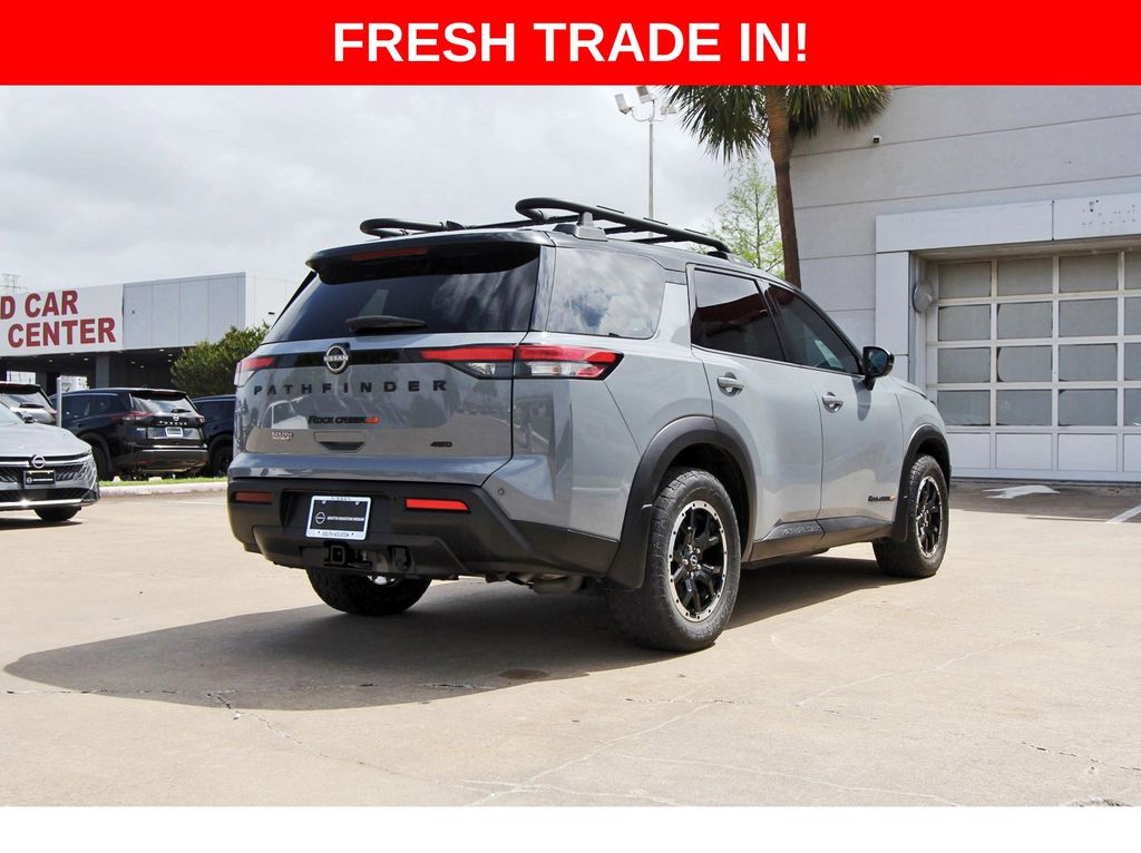 South Houston Nissan is proud to present you with another True Market Priced Pre-Owned Vehicle. This 2023 Nissan Pathfinder Rock Creek is loaded with the following Factory Options: 4WD 4WD, 3rd row seats: bench, 4-Wheel Disc Brakes, 6 Speakers, ABS brakes, Air Conditioning, Alloy wheels, AM/FM radio: SiriusXM, Auto High-beam Headlights, Automatic temperature control, Axle Ratio: 4.334, Black Splash Guards (Set of 4), Brake assist, Delay-off headlights, Driver door bin, Driver vanity mirror, Dual front impact airbags, Dual front side impact airbags, Electronic Stability Control, Emergency communication system: NissanConnect Services, Four wheel independent suspension, Front anti-roll bar, Front Bucket Seats, Front Center Armrest, Front dual zone A/C, Front fog lights, Front reading lights, Fully automatic headlights, Heated door mirrors, Heated Front Bucket Seats, Heated front seats, Illuminated entry, Knee airbag, Leather steering wheel, Leatherette Seating Surfaces, Low tire pressure warning, Nissan USB Charging Cable Set, NissanConnect featuring Apple CarPlay and Android Auto, Occupant sensing airbag, Outside temperature display, Overhead airbag, Overhead console, Panic alarm, Passenger door bin, Passenger vanity mirror, Power door mirrors, Power driver seat, Power steering, Power windows, Radio data system, Radio: AM/FM Audio System w/NissanConnect, Rear air conditioning, Rear anti-roll bar, Rear Parking Sensors, Rear reading lights, Rear side impact airbag, Rear window defroster, Rear window wiper, Reclining 3rd row seat, Remote keyless entry, Rock Creek AS Floor Liners & Cargo Area Protector, Rock Creek Roof Rack, Roof rack, Security system, Speed control, Speed-sensing steering, Split folding rear seat, Spoiler, Steering wheel mounted audio controls, Tachometer, Telescoping steering wheel, Tilt steering wheel, Traction control, Trip computer, Turn signal indicator mirrors, Variably intermittent wipers, and Wheels: 18" Beadlock Styled Design!!Excludes sales taxes (vary by state) tag-title-license and dealer added options. Must finance with South Houston Nissan to qualify for online pricing.