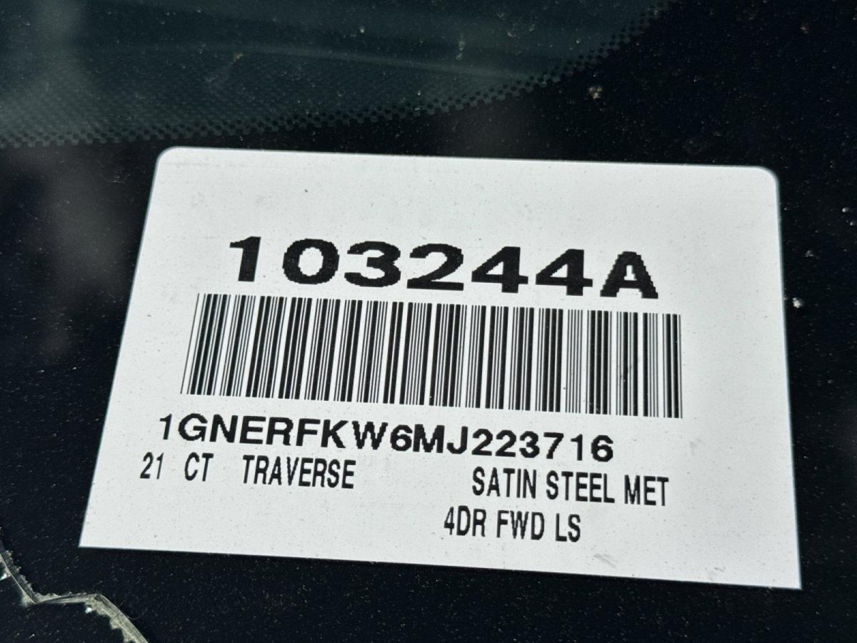 Discover the perfect blend of style, capability, and convenience with this 2021 Chevrolet Traverse LS. This versatile SUV is ready to take on your daily adventures and weekend getaways with ease.- License Plate Front Mounting Package- Front License Plate Bracket Mounting Package- Preferred Equipment Group 1LSBoasting a powerful 3.6L V6 engine and a smooth 9-speed automatic transmission, the Traverse LS delivers an impressive 18 city/27 highway MPG, ensuring you can go the distance without frequent stops. Its sleek gray exterior is complemented by a spacious and well-appointed interior, featuring premium cloth seating for up to 8 passengers.Enjoy the convenience of advanced technology, including the Chevrolet Infotainment System with Apple CarPlay and Android Auto integration. Stay connected and entertained on the go, while the OnStar and Chevrolet connected services keep you safe and secure.The Traverse LS is packed with a host of impressive features that elevate your driving experience, such as dual-zone automatic climate control, a rear window defroster, and a rear window wiper for optimal visibility in any weather. The 8-way power-adjustable driver's seat and tilt/telescoping steering wheel ensure a comfortable and customized driving position.Safety is a top priority, with the Traverse LS offering a comprehensive suite of advanced safety features, including airbags, anti-lock brakes, electronic stability control, and a rear vision camera to help you navigate with confidence.Whether you're shuttling the family, embarking on a road trip, or tackling your daily commute, this 2021 Chevrolet Traverse LS is the perfect companion. Experience the perfect blend of style, capability, and convenience – visit our showroom today and let us demonstrate why this SUV is the ideal choice for your lifestyle.